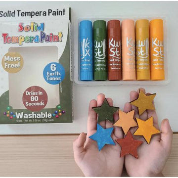 This Kwik Stix Solid Tempera Paint - 6 Earth Tones come with six colours to celebrate the outdoors. Create a landscape with these colours that mirror nature, like the vibrant green of the grass, the bright yellow of the sun, the burnt red of clay, or the crystal blue of a lake.