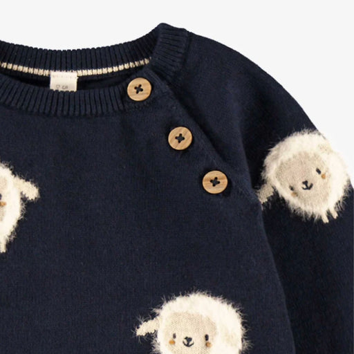 Souris MiniNavy blue knit sweater with adorable sheep patterns. The round neckline, hem, and cuffs are made of ribbed knit for a better fit. Features three fr...