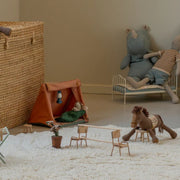 Pony is a faithful friend with a soft brown coat and a neatly brushed mane and tail made from cotton threads. A knitted saddle rests gently across its back, ready to carry little friends on imaginative journeys. Whether trotting through leafy forests or waiting patiently by the stable, Pony invites quiet adventures and endless moments of play. It can play with other Maileg Soft Friends.