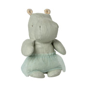 Safari friends are made in the softest fabric and come in great colours. They can sit by themselves as they have beans in their bottom. They are just waiting for you to go and hug them. This small hippo is wearing a beautiful ballerina skirt. Mix and match as you like with other Soft Friend items form Maileg.