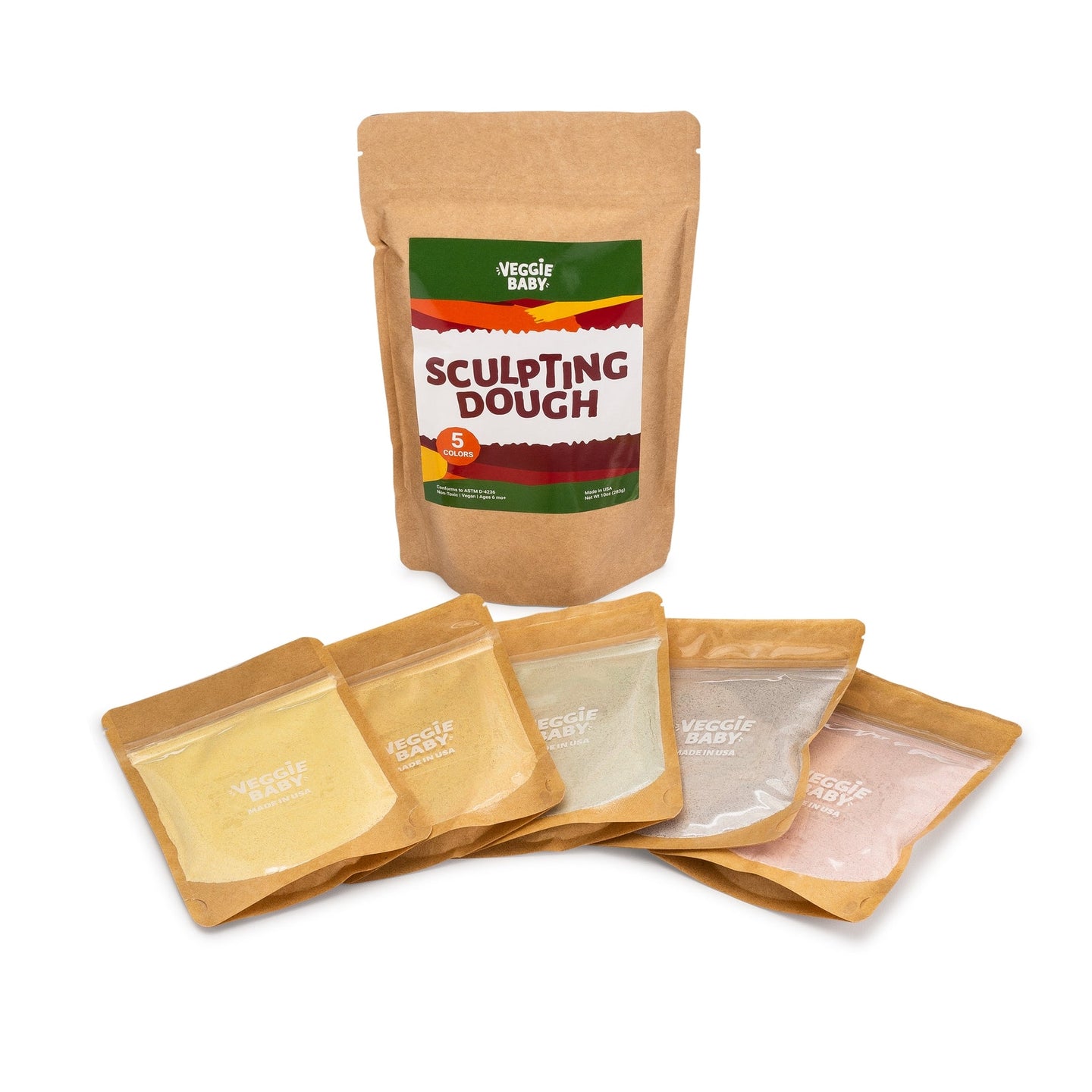 - Natural, Vegan-Friendly Ingredients – Veggie Sculpting Dough doesn’t contain dairy, sugar, preservatives, and heat-sealed packets with dry, all-natural powders to ensure fresh, high-quality dough (contains gluten). Product tested for lead and heavy metals and conforms to ASTM-D-4236.