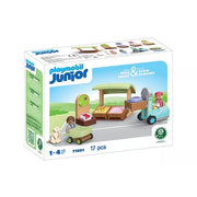 It's Playmobil market day! Which vendor has the crispiest vegetables and the sweetest fruits? With this colourful set, your child can gain their first shopping experience. Who delivers the groceries, and how are they weighed? With the Organic Market Stall, your child can playfully recreate the shopping process and, in the process, develop a sense of shapes, colours, and quantities. Does your child enjoy shopping? Then this set is perfect for you. At the Organic Market Stand, there's plenty for little market visitors to explore. The forklift delivers fruits and vegetables. Quickly, the crates are unloaded, and the sales begin. How many bananas are printed on the shape block? Who can turn the scale to the correct number? And how many fruits fit in the shopping cart? Who can sort all the fruits and vegetables into the right crate? After the successful shopping trip, there's still one question left: Which fruit or vegetable tastes best?