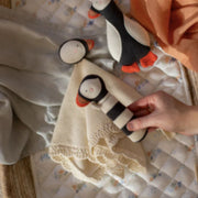 • Made from organic cotton and organic dyes, Avery Row's puffin rattle is soft on your little one's skin and kind to the environment.