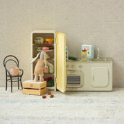 An old-fashioned fridge that fits perfectly into Maileg's miniature dollhouse. Maileg Miniature Fridge is made of metal with a magnetic lock and frosted shelves inside. A great addition to this fridge is the Miniature Grocery Box.