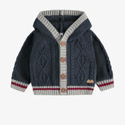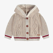 Knit Cardigan with Braided Pattern + Hood