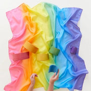 Enchanted Playsilk features beautifully blended colour harmonies inspired by nature's beauty. Playsilks are silkscreened by hand on 35 x 35-inch squares made from gorgeous, lightweight (5 momme) 100% pure mulberry silk.