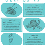 • Pebble is a beloved fair-trade brand creating handmade toys by skilled women artisans in rural Bangladesh. Crafted from eco-friendly materials like organic cotton, each rattle, plush, and playset blends timeless charm with ethical craftsmanship.