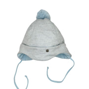 This Peaked cap in Winter Blue is fully lined - a perfectly comfortable winter companion. The cut ear flaps and the tie ensure a secure fit. The cotton lining makes the cap particularly comfortable and keeps your baby warm.