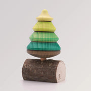 An excellent gift for young and old. This wooden tree spinning top is disguised as a fir tree in a wooden branch stand. A little more challenging than most of the other spinning tops from Mader, but not as tricky as the mini and the barrel top in the rainbow set.