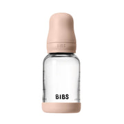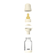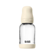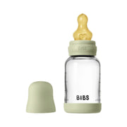 BIBS Baby Glass Bottle Complete Set, 120ml offers a sleek, award-winning design with an anti-colic valve designed to help reduce air intake and bubbles, a breast-like nipple to help ease the transition between breastfeeding and bottle-feeding, and a built-to-last, durable borosilicate glass base. Comes with a natural rubber latex nipple, a material known for its skin-like softness and flexibility, designed to closely mimic a real nipple. Slow flow / BPA-Free / Ages 0+