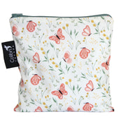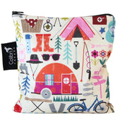 Colibri Large Snack bag is made in Canada with 100% cotton outer, 100% polyester with polyurethane membrane liner (commonly known as PUL). YKK zippers that are lead and nickel-free.