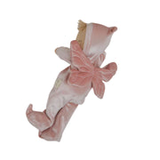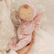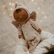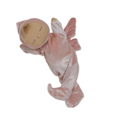 Dressed in a soft velvet onesie with shimmering fairy wings, Aurora is designed for the coziest cuddles and the dreamiest adventures. Her floppy body and gentle weight make her perfect for tiny arms to hold close during nap time or storytime..