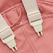 - The Rain pants have adjustable elastic straps that can be opened at the front with snap fasteners. The Trousers can be tightened at the sides with a push-botton. The Rain pants have elastic edges around the leg openings and adjustable, removable elastic straps to put under the rubber boots.