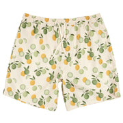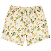These Citrus Print Swim Trunks are a vacation staple. The fresh and fruity shorts coordinate with the green long-sleeved rashguard from the same range or can be worn on their own when heading to the pool. The elasticated waistband makes dressing and drying fuss-free, while the drawstring tie ensures the trunks stay in place while they practise their turns, flips and underwater handstands.