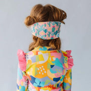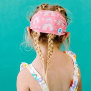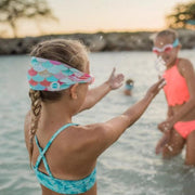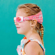 Splash Swim Goggles features a tangle-free, patent-pending strap in fun colour prints with a white frame and lightly tinted blue lenses.