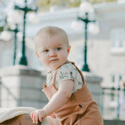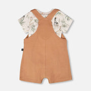 A safari spirit defines the organic cotton jersey onesie and cotton rib shortall set zebra jungle print and caramel for little boys. The short-sleeve onesie charms with a round neckline, shoulder snaps, and an allover zebra and palm print. Layered on top, the caramel ribbed shortall adds style with wide straps, front patch pockets, and snap closures at the crotch for easy changing. Made from soft organic cotton jersey and cotton rib, the set is breathable, practical, and perfect for summer adventures.