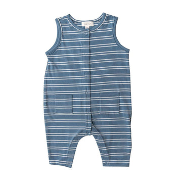 This stylish romper from Angel Dear is made from 100% organic cotton, perfect for a day out in comfort. Its sleeveless design and seashore stripe pattern makes it a stylish choice for any summer outing.