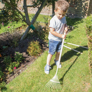 The Long Handled Leaf Rake pairs well with other kids' gardening tools, including a gardening belt, gardening gloves, watering cans, and hand tools.