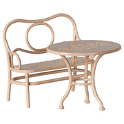 This Café Big Pale Pink set furniture that fits Mum and Dad-sized mice. The set has a bench and an oval table and is a perfect place for enjoying afternoon tea. The set fits the Mouse Hole Farmhouse..