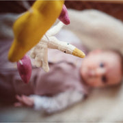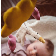 The beautiful Sunrise Mobile in a pink colour scheme is a real eye-catcher in any nursery. Thanks to the practical loop, it can easily be hung up anywhere. The little clouds and the goose can also be removed individually and used on a pram chain. The gentle movement of the mobile can help children to calm down and fall asleep better.