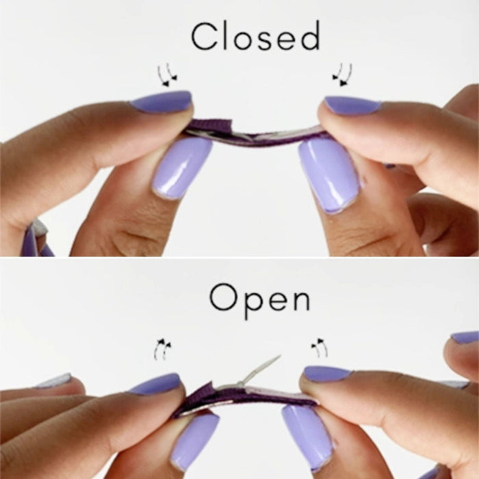 • Snap clips slide in and "snap" shut like a barrette style. Do not use damp hair.