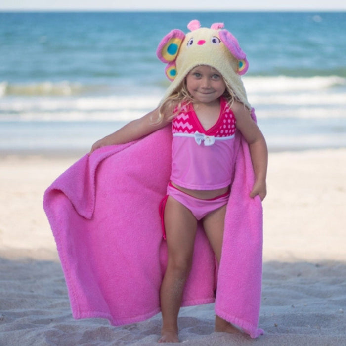 This Kids Hooded Towel - Butterfly is crafted from 100% cotton terry, providing gentle warmth and quick drying after baths or outdoor play. Its charming design features appliqued felt eyes and embroidered blue and yellow wings, adding a playful touch. Practical hand pockets offer a secure grip, making it easy for your child to stay cozy and comfortable. Ideal for keeping your little one warm and dry with style and functionality.