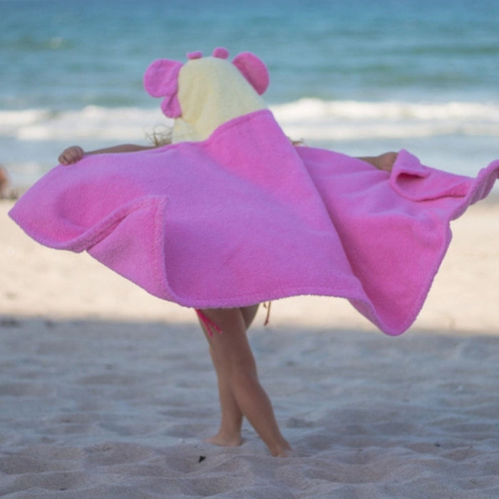 - Materials: 100% cotton - small pockets on top corners for little hands to easily hold the towel when wearing.