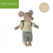 The Maileg Tricycle Mouse is dressed for a day in kindergarten or school as she/he brings her/his backpack. The Tricycle mouse has magnet hands, so she/he can hold the tricycle handles tight for a fast trip.