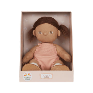 • The Dinkum Dolls are made from the softest, snuggliest cotton outer, making them perfect for not only playing with but cuddling and going to sleep alongside. They feature the sweetest embroidered details, from their eyes and mouth to the little rainbow over their heart.
