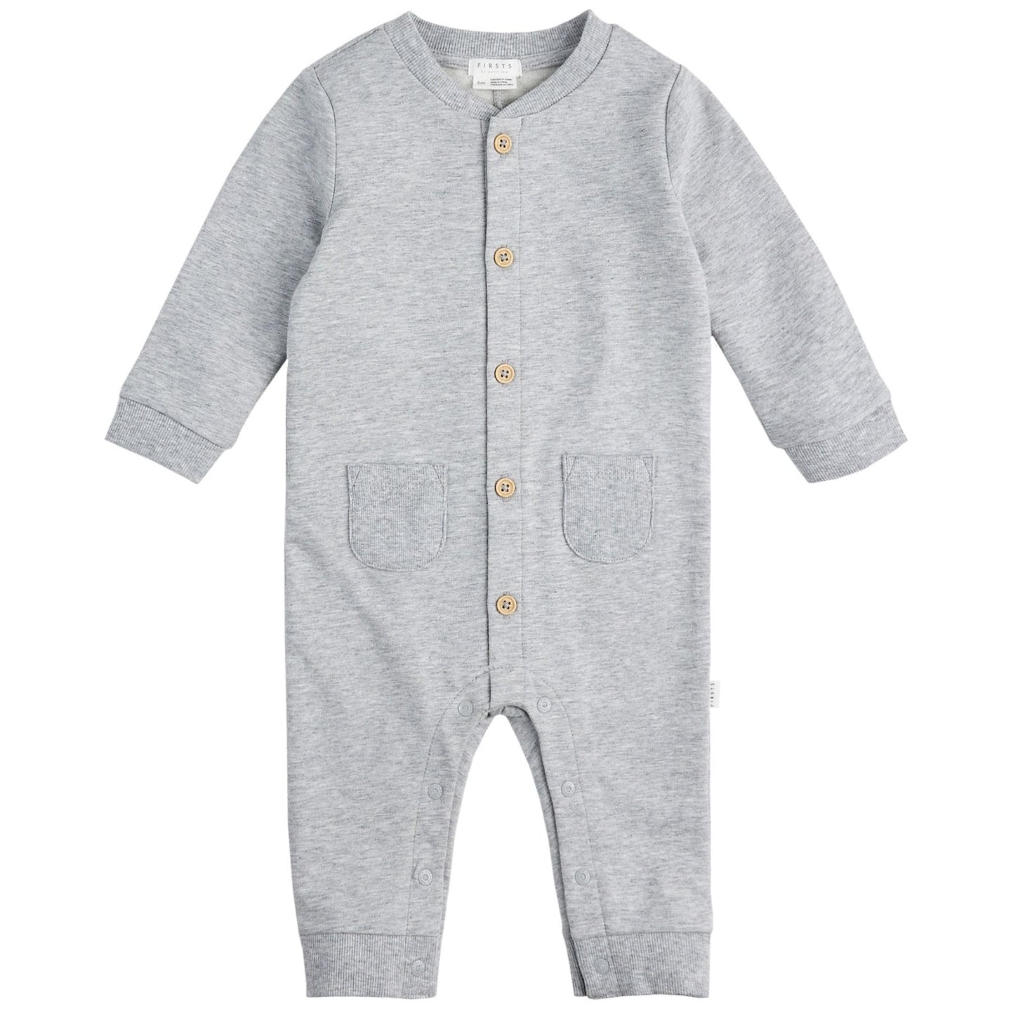 This heather-grey playsuit is made from organically grown cotton terry and is the perfect outfit choice for quick dressing to get them out of the door on busy mornings. The playsuit has buttons down the front and small pockets on either side – creating a timeless vintage style. With elastic in the ankles and cuffs, the playsuit keeps their hands and feet free to discover the world around them. Snap buttons on the inside of the legs make diaper changing quick and easy while on the go.