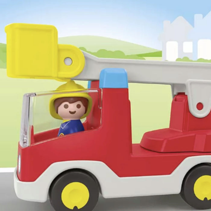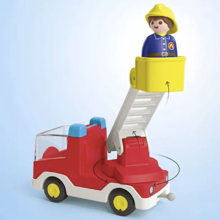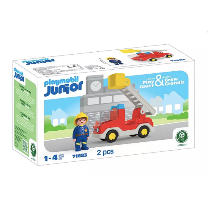 Is that smoke on the horizon? Quickly, the brave firefighter hops into his fire ladder truck and rushes to the scene of the fire! With the swivelling ladder and the movable basket, the firefighter can extinguish any blaze. Step by step, he climbs the fire ladder until he stands securely in the basket. How high will he go? Who will the firefighter rescue today? Play with your child and recreate an adventurous firefighting mission, transforming the playroom into a command center. Are you ready for heroic deeds with Ladder Unit Fire Truck from Playmobil Junior?