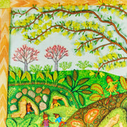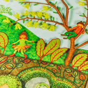 The Springtime in Mossy Glen Seek + Find Playsilk is filled with details for children to discover again and again. The woodland scene includes winding paths, flowing water, and signs of new growth, encouraging little ones to look closely, explore, and create their own stories.