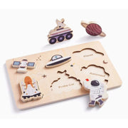Get ready for an out-of-this-world adventure with this exciting Space Adventure Wooden Puzzle! Featuring six chunky pieces—an astronaut, space shuttle, satellite, Mars rover, planet, and even a UFO—this puzzle is perfect for little explorers eager to learn about the wonders of space.